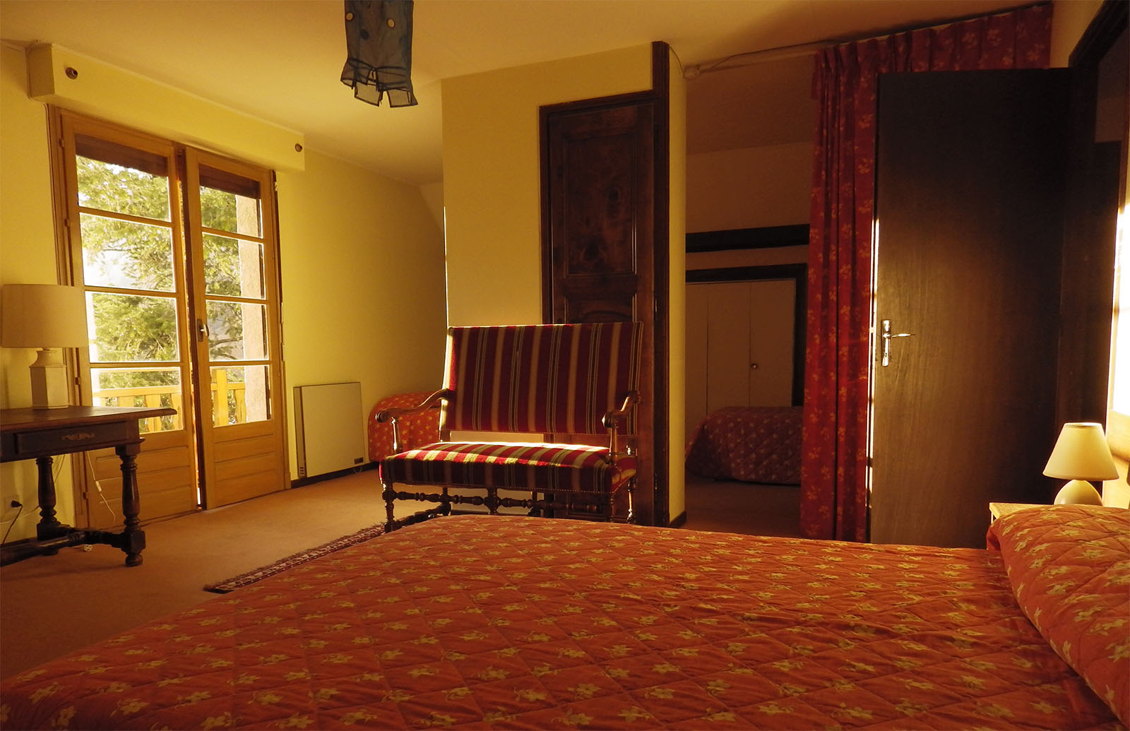 •  ETAGE, grande chambre : 2 lits simples + 1 lit double